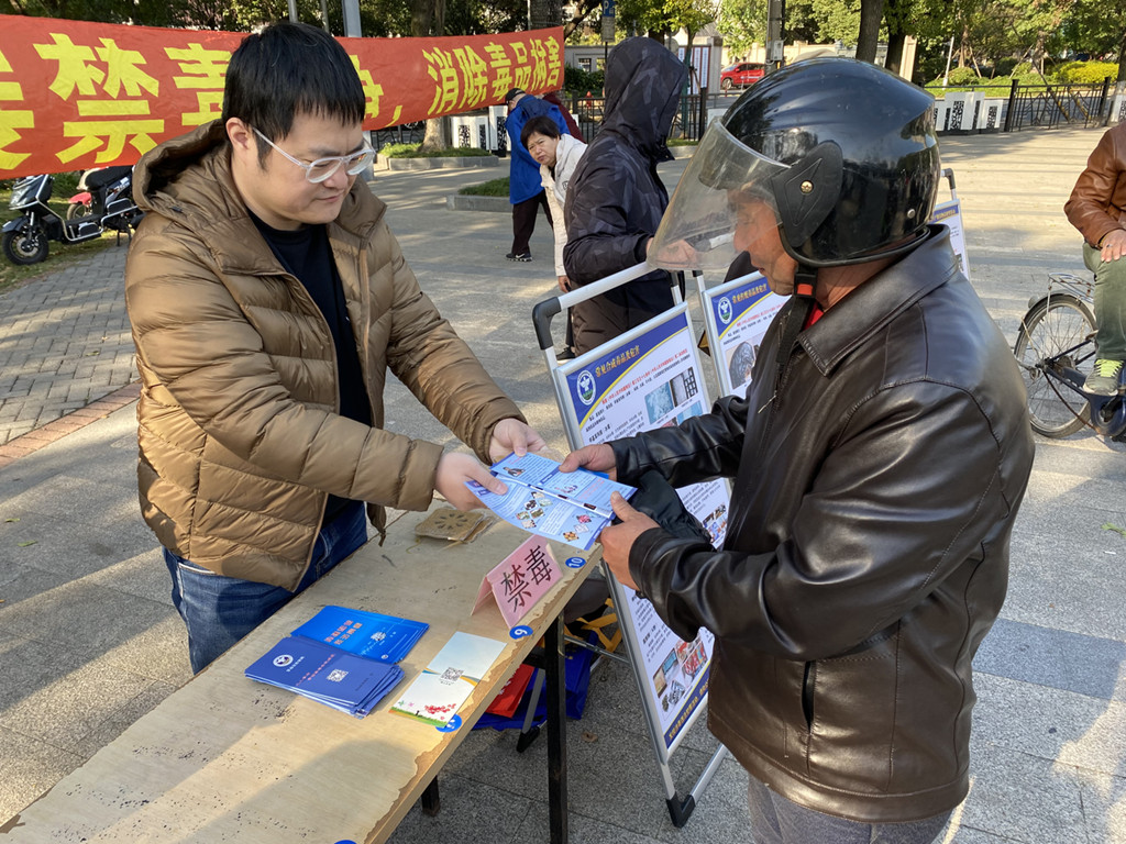 为了进一步加大对社区居民的毒品预防宣传教育,提升他们识毒、防毒、主动拒绝毒品的能力与意识,2021年11月19日上午,自强宝山工作站罗店社工点禁毒社工及社区禁毒志愿者们来到罗店花神广场,开展了以“开展禁毒斗阵 消除毒品祸害”为主题的社区禁毒宣传活动。
