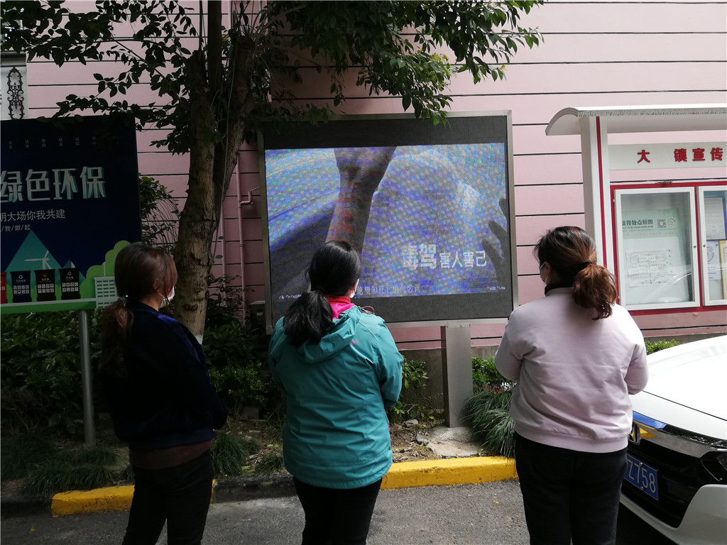 自强宝山工作站大场社工点的禁毒社工们根据区禁毒办工作要求,结合我镇禁毒宣传工作的特点,在镇禁毒办统一协调下,集中在社区公共场所,充分利用“社区通”、“广告电子屏”等现有各种宣传资源,多点滚动播放由钟南山院士为禁毒宣传形象大使摄制而成的《别让“我以为“变成“我后悔”》的禁毒宣传公益片,从医学专家视角介绍吸毒对个人家庭和社会危害,提倡社区居民特别是青少年养成“珍爱生命 拒绝毒品”的健康生活方式。