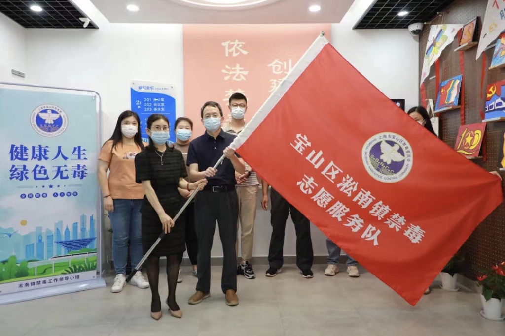 活动开始,首先,朱建忠副书记向淞南镇禁毒志愿服务队队长授旗,祝贺淞南镇成为宝山区首家禁毒志愿服务试点单位。同时,提出三点要求: