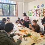 随后,家庭共同协作完成向日葵花束扭扭棒的制作,在家庭的沟通交流与良好合作下顺利完成向日葵花束。服务对象在制作过程中寻找在家庭中的自身担当。