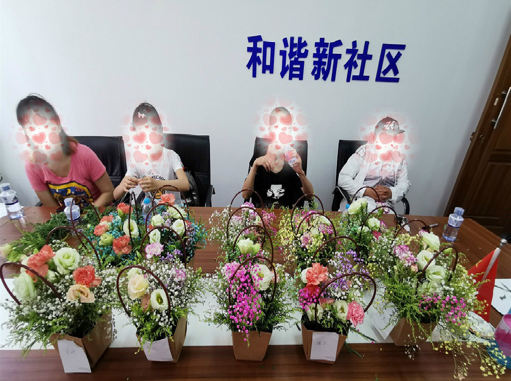 小组成员们围坐在一起,首先感谢社工石松老师教会大家怎样识别不同的花种,如何将一支支零散的花朵和绿叶配合组成一个个漂亮的花篮,培养了艺术美,陶冶了生活情操。