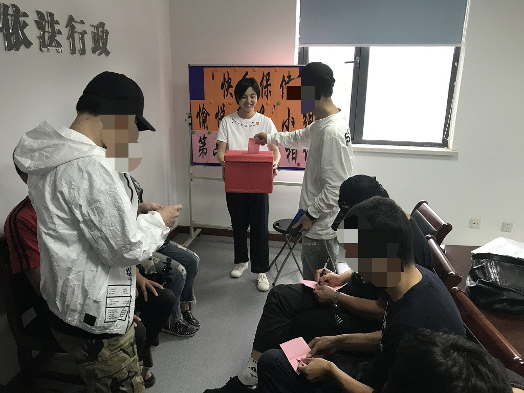 首先主带社工介绍了本节小组活动的内容及目标,告诉组员活动流程。随后展开热身小游戏‘甜心’,组员间互送糖果,说出欣赏对方的一种特质,直至把糖送完。各组员积极参与,极大的活跃了本次小组活动的氛围;小游戏结束之后,主带社工带领组员温习五行健身操,让组员再次强化感受到适当锻炼对身体的益处。而后组员与主带社工围坐一起,畅谈小组活动的收获,互相倾听分享内心的感受,最终达成了“要想健康必须坚持运动”的共识。而后主带社工以引导组员对于未来生活的积极愿景为目的而开展“匿名信箱”,各组员写一张小纸条,内容是对自己鼓励对于未来积极展望的话,放入信箱中。最后主带社工带领组员回顾整个小组活动开展的情况,并组织组员间互相告别缓解组员间的离别情绪并宣布小组结束。