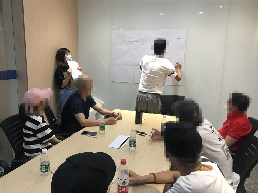 首先主带社工介绍了本节小组活动的内容及目标,告诉组员活动流程。随后展开热身小游戏‘我来画你来猜’,组员依前面组员的绘画内容而继续创作。各组员积极参与,极大的活跃了本次小组活动的氛围;小游戏结束之后书法老师开始认真教授书法知识,组员通过全情投入练习书法巩固学到的新知识。而后主带社工带领组员回顾和总结小组活动的历程,组员分享参加小组活动后的感觉和收获,共同展望未来畅谈未来的计划。最后主带社工组织组员间互相告别缓解组员间的离别情绪并宣布小组结束。