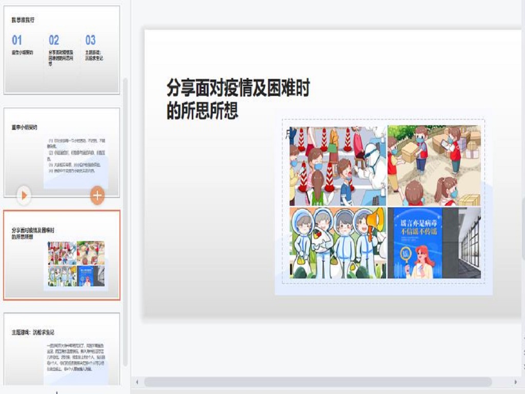 活动的开始,主带社工陈莹针对线上活动的特点,通过事先制作的PPT,将第二节小组活动的相关内容让组员大致了解。主带社工带领组员们回顾了第一节活动的小组契约,鼓励今日准时上线的组员,还对后续小组活动的纪律进行了提醒,随后明确了本节小组的活动内容,让组员在后续的互动中能够有所准备。