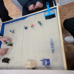 活动开始,禁毒社工首先回顾上节小组活动的内容,并介绍本次活动目标和内容。接着活动开始,社工先让小组成员把手放在沙盘里面,心理默默地想着我是谁?过去的我是什么样的?现在的我是什么样的状态?以及未来我期望的生活是什么样的?参与的小组成员每个人把手放在细软的沙子里面,静静地放松和感受。随着社工逐步深入的引导,组员们纷纷起身选择了自己想要的沙盘模具,每个人选择了三个模具,一个代表过去的自己,一个代表现在的自己,一个代表自己的希望的样子。分享讨论环节,在沙盘呈现中,小组成员陆某选了士兵模具代表过去,表示过去的自己在家庭中内心自责、羞怯和不自信,父母很少能倾听自己的内心想法,其实从小的梦想就是当一名正直的军人;而现在的生活就是家庭,希望家人平安顺遂;对于未来的自己,期望身体健康,平淡安稳。透过象征,组员们能够自由地表达当下的想法和情感,平时生活中无法表达的想法,在沙盘这个“场”中会自然地表现出来。通过沙盘这种媒介,家庭成员间增进了理解,重建起相互之间的亲密关系。