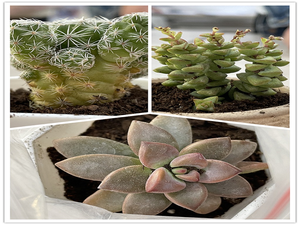 主带社工表示先为他们简单介绍一下种植的注意事项,对于土壤和光照的要求,随后为大家分发多肉和花盆让大家尝试种植一下。组员们在挑选好自己中意的多肉和花盆后,开始动手种植,唯一的女性组员张某非常快速的完成了种植并表示,“我说的吧,很简单的”主带社工查看后对其进行简单的修正后,邀请她一起帮助不擅长的组员,组员董某马上表示“我的手不是很灵活,能不能先来帮帮我呀”,张某在旁协助,用铲子将营养土倒入花盆一半的位置,再插入多肉,最后加入适量的营养土并压。其余的组员也在彼此的帮助下,纷纷完成了种植。