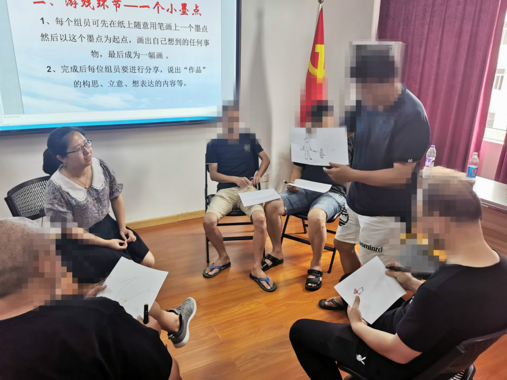 8月7日上午,金山工作站在朱泾镇党建服务中心四楼会议室开展金色长廊第四节小组活动。6名戒毒康复人员参加活动。