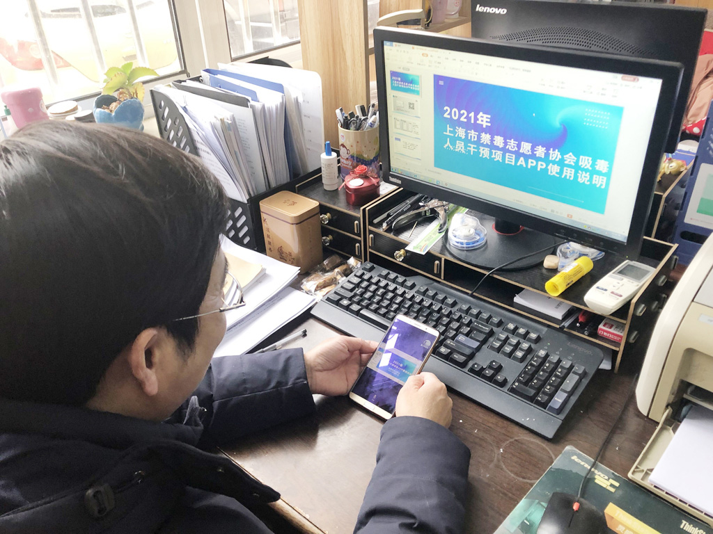 培训中,盛站长针对2021年吸毒人员干预项目APP使用要求,从软件下载、帐号登陆到如何操作进行了详细的解说,并在培训过程中逐步教授并完成软件的安装与操作。各乡镇禁毒社工以点为单位,通过电脑或手机仔细记录培训的重要内容,并根据演示的PPT开始进行操作,碰到问题和困难及时进行反馈,并一起讨论解决。