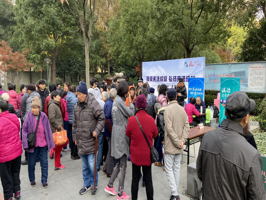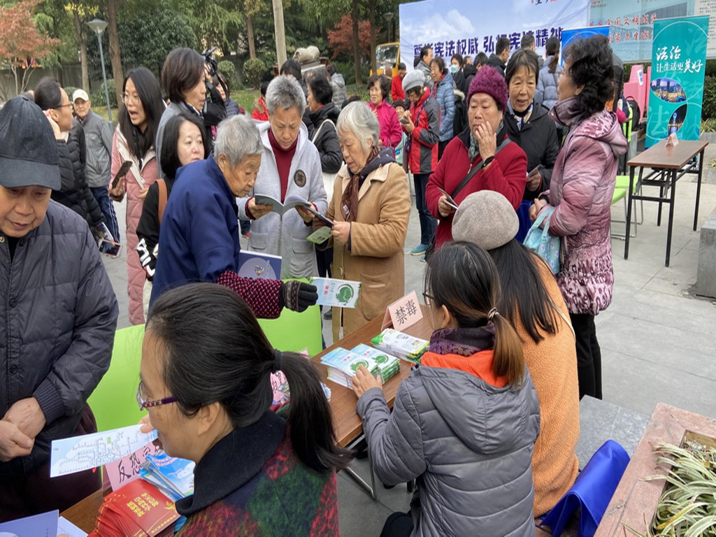 12月5日上午9.00,在辖区内茶陵绿地设摊,斜土街道平安办进行以“尊崇宪法权威 弘扬宪法精神”为主题的大型法治宣传活动,自强徐汇工作站斜土社工点的禁毒社工借此契机,也参与到宣传活动之中,在开展宪法宣传的同时,积极向社区居民进行禁毒宣传。