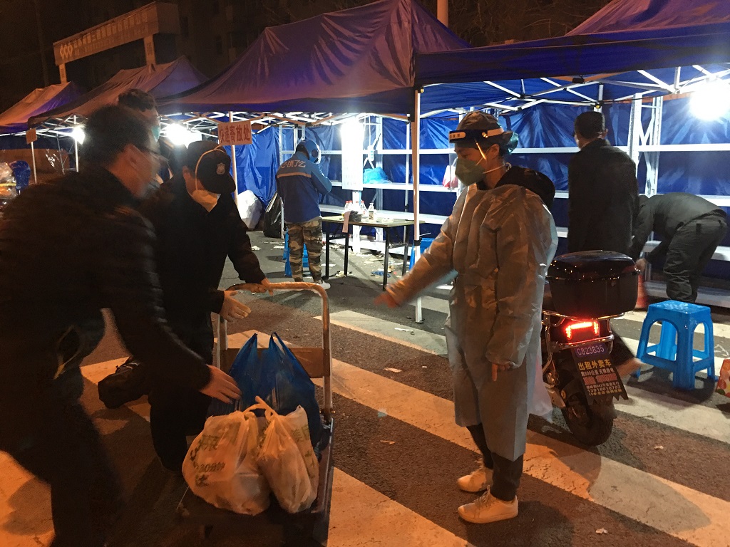 大家积极有序的参与疫情防控工作,24小时轮班,放弃休息日,加班加点的坚守在岗位上,用实际行动助力抗疫。由于工作环境艰苦简陋,没有临时厕所,我们的女同胞们控制饮水量,努力坚守岗位,没有怨言;男社工在晚上值班的任务非常艰巨,他们席地而睡,不畏风雨,认真处理晚间各类突发状况,毫不懈怠;有的社工白天在单位完成工作,下班后马上前来参加志愿服务,每天工作时间达12小时;有的社工由于临时有特殊情况不能到岗,其他社工主动顶岗,积极补位;组长严斌从23号至今一直奋战在"战疫"第一线,统筹安排任务,及时沟通协调,关心与保护着每位社工,敬业尽责,提升了整支队伍的凝聚力和战斗力!