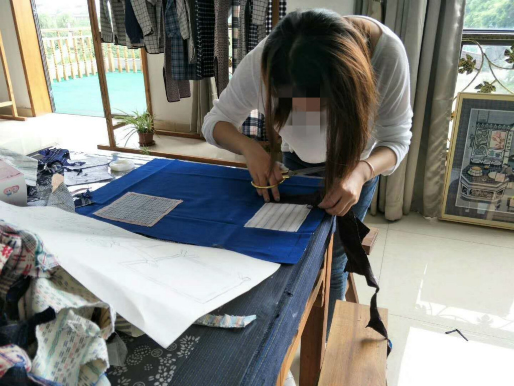 活动首先由禁毒志愿者民间艺人项园青老师指导戒毒人员和禁毒志愿者继续完成“不让毒品进我家”、“禁毒知识讲座”、“家庭拒毒承诺活动”、“防复吸训练”等作品。组员们携手禁毒志愿者相互配合,根据上次未完成的内容进行继续裁剪,认真进行组装和粘贴,部分学员将自己已经完成的土布贴画作品在项老师的指导下开始装裱。然后由禁毒社工曹英主带,先是引导学员们共同回忆2月份第一次参加活动时的感受,随后结合学员们今天完成作品后的内心感受进行对比。小俞说:“当时参加活动,觉得这种细活男人根本做不好,今天看到通过自己努力完成的作品后,认为只要坚定信心一定能做好每件事情。”小倩说:“这是我第二年参加活动,从去年我和同伴一起完成作品,到今年我能自己独立完成作品,觉得自己越来越厉害了。”
