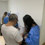 禁毒社工与志愿者于体检当天早上7点准时到达卫生院进行期初的准备工作,并在各自负责的区域熟悉流程,同时为了减少社区戒毒康复人员的等待时间,从医院入口开始,社工就与志愿者一起查验健康码及测温,并在一楼引导服务对象有序地进入二楼登记、验血、B超、胸片等常规内科检查。