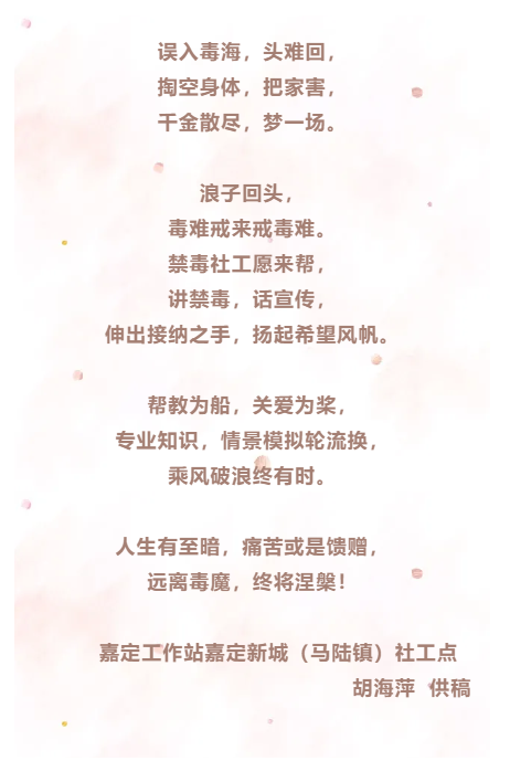 2022年2月24日文章导航历史的文章历史的文章:【社工手记】我的财富(嘉定胡海萍)未来的文章未来的文章:【嘉定】浓情元宵共欢乐·邻里相聚一家亲——马陆镇禁毒社工在行动相关文章【小组活动】寻业APP(宝山月浦 张峰)2025年10月30日【主题活动】中兴镇开展禁毒知识专题讲座活动 (中兴镇 黄欢)2025年10月30日【平安关爱】携手暖童心,共筑成长梦 (新河镇 周丹)2025年10月30日【项目工作】爱心助学,暖心助力 (虹口 毛剑敏供稿)2025年10月30日【长宁】识毒小课堂 青春护航筑防线2025年10月30日【小组工作】以养生之钥 启新生之门——“走向明天”小组圆满收官 (虹口 朱敏勤供稿)2025年10月30日
