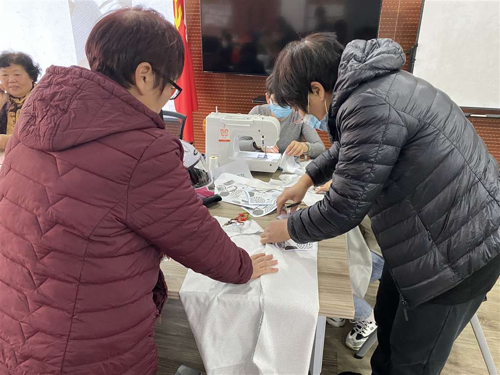 冬日的下午,屋外寒风阵阵,屋内其乐融融,志愿者和服务对象分工合作,你裁布我缝布,制作了一个又一个的爱心口罩。之后,这些爱心口罩将发放到社区内的孤寡老人手中,为他们送上冬日里的一抹阳光。
