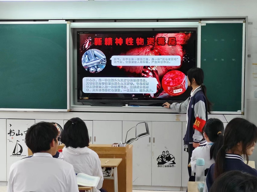 宝山职校志愿服务队分为两小队,第一小分队进入班级,将所学知识融会贯通,作为小老师传授给大家,用通俗易懂的语言讲解依托咪酯、聪明药、开心果等第三代毒品(新精神活性物质),帮助同学们了解毒品和药品之间的双重属性。同时传阅了毒品仿真模具,着重针对“跳跳糖”、“邮票”、”奶茶”等极具伪装性的毒品带来的滥用危害进行了介绍。