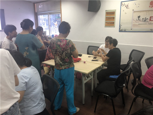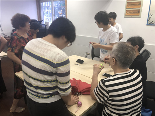 在此,社工和志愿者们一同提前过节,同时也为了庆祝新中国成立70周年,社工请来了手工老师教大家做中国风钥匙扣。志愿者们积极性很高,很认真地制作,当一个个成品出现的时候大家都很自豪。志愿者杨阿姨说一开始觉得很复杂,怕自己完成不了,差点没耐心就要中途放弃了,但是看到其他人很认真地在制作,自己也就继续做了,没想到结果就成功了。这就跟帮助戒毒者是一个道理的,社会多给他们一份温暖和支持,少一份歧视,戒毒者就会离成功更进一步。