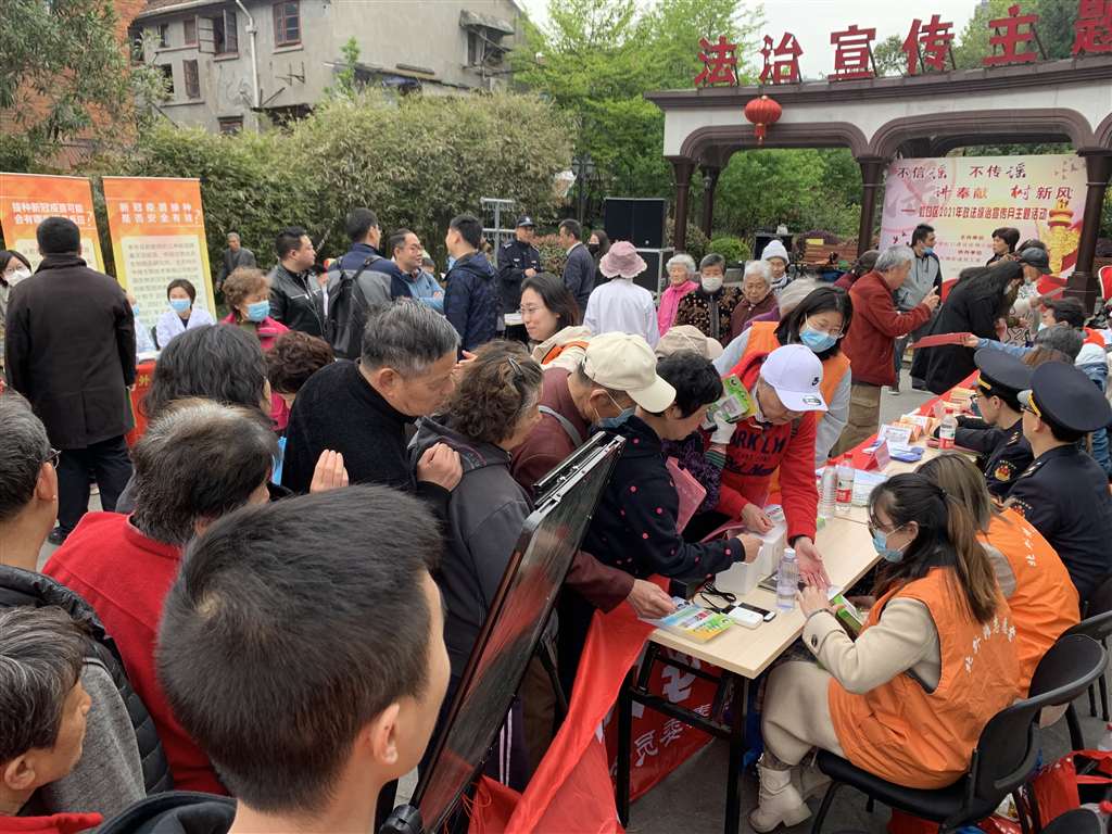 2021年4月19日上午,自强虹口工作站北外滩禁毒社工在平安虹口建设协调小组办公室、区禁毒办的组织下在虹口霍山法治公园参与开展2021年政法综治宣传活动。