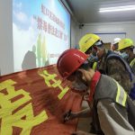4月27日中午,临博海远城市建设发展有限公司、上海港惠建设管理有限公司、中海建筑有限公司的40余名员工应邀来到凉城新村街道北中环国际创新中心项目建设工地,参加主题为“健康人生 绿色无毒”的禁毒宣传教育活动。通过宣讲禁毒法规、介绍禁毒形势、展示禁毒图板,帮助建筑工人实现知毒基础、识毒水平、防毒意识、拒毒能力“四个提升”。大家纷纷志愿在“珍爱生命 远离毒品”条幅上郑重签署自己的名字,为共同守护健康人生、建设平安上海写下浓墨重彩的一笔。