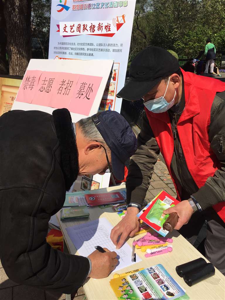 为营造全民禁毒的良好氛围,3月23日,自强虹口工作站的欧阳街道禁毒社工和禁毒志愿者在鲁迅公园开展禁毒宣传暨禁毒志愿者招募活动。欧阳路街道党工委副书记周鑫,平安办主任翟非南、自强虹口工作站站长肖军莅临现场指导。