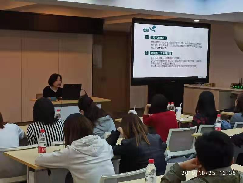 2019年10月25日下午,虹口工作站全体初级社工在水电路120号广中社区服务中心2楼开展了一场危机干预理论的培训,本次培训由中级社工俞黎主讲。