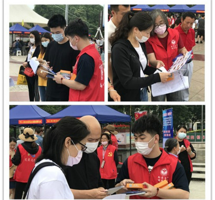 上午八时许,禁毒社工和志愿者通过设置宣传咨询台、摆放宣传海报、发放宣传单、现场解答、等多种形式,深入宣传毒品的种类、怎样预防毒品的知识及禁毒的重要意义等;在会场四周向参加招聘会的用人单位与过往群众开展针对企业员工的禁毒宣传,传递禁毒知识,为他们答疑解惑。