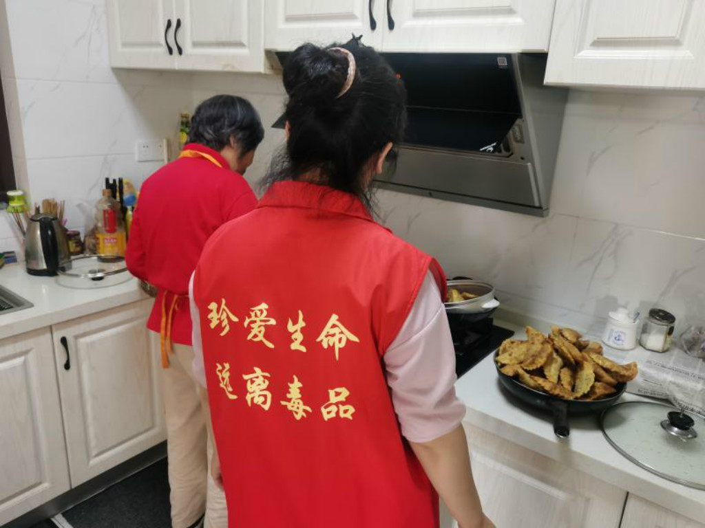 活动首先由禁毒社工顾莉凤通过“伪装”毒品样本模型和真实案例相结合的方式,向社区民们分别介绍了“跳跳糖、奶茶、小树枝、邮票、小熊软糖、茶树菇、彩虹烟、巧克力、笑气、蓝精灵、大麻叶、阿拉伯茶”等常见伪装毒品知识,引导社区居民认识“伪装毒品”都是毒贩们利用现在年轻人爱吃的零食特点,将毒品伪装成食品,这样可以诱骗更多的人去吸毒。提醒大家平时要在正规商店购买食品,不要接受陌生人提供的食品。随后由禁毒社工曹英通过常见毒品样本模型和真实案例相结合的方式,向社区民们分别介绍了“鸦片、吗啡、海洛因、杜冷丁、氯胺酮、冰毒、摇头丸、可卡因、安眠酮、美沙酮”等常见毒品知识。并通过“过量服用止咳水”的真实案例,向社区居民重点介绍过量服用之后容易形成心理依赖,戒断症状类似毒品海洛因,并且将止咳药水和可乐等饮料混合饮用,产生的效果与毒品相似,引导大家认识在平时生活中要合理用药或遵照医嘱。最后,禁毒社工、禁毒志愿者和社区居民们共同制作具有吕巷本土特色的中秋眉毛饺,一起欢欢喜喜共度中秋佳节。