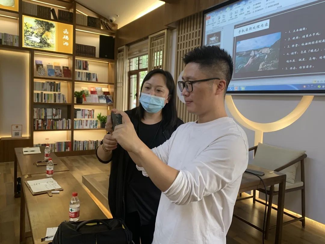 参训的人员一边听课一边观看授课老师手机摄影的操作实践过程,不时进行提问或相互探讨,学习一些手机修图软件的操作方法,学习气氛十分浓厚。