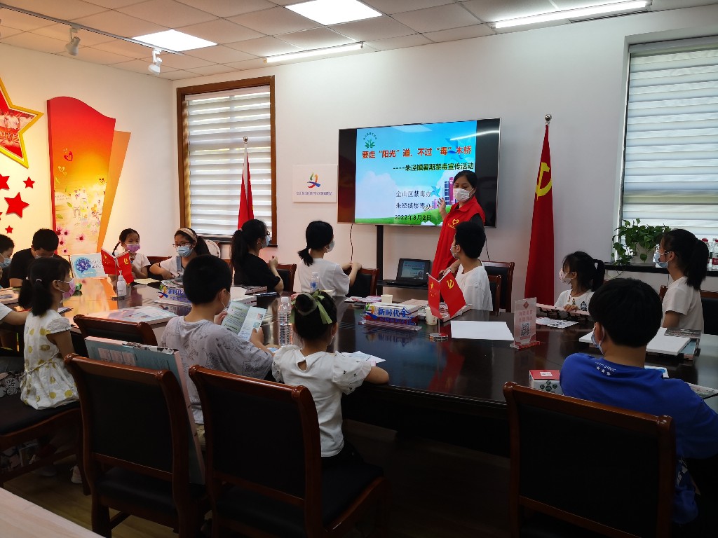 为进一步加强毒品预防宣传教育,全面提升青少年防范毒品意识,增强青少年参与禁毒的积极性和主动性,自觉抵制毒品。近期,朱泾镇禁毒办组织社区青少年在社区禁毒学校、社区图书馆、儿童保护中心以及各居民区开展“要走‘阳光’道、不过‘毒’木桥”禁毒宣传活动。