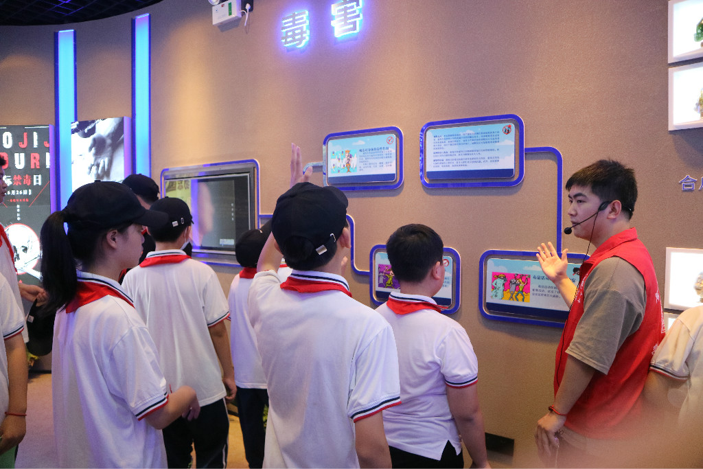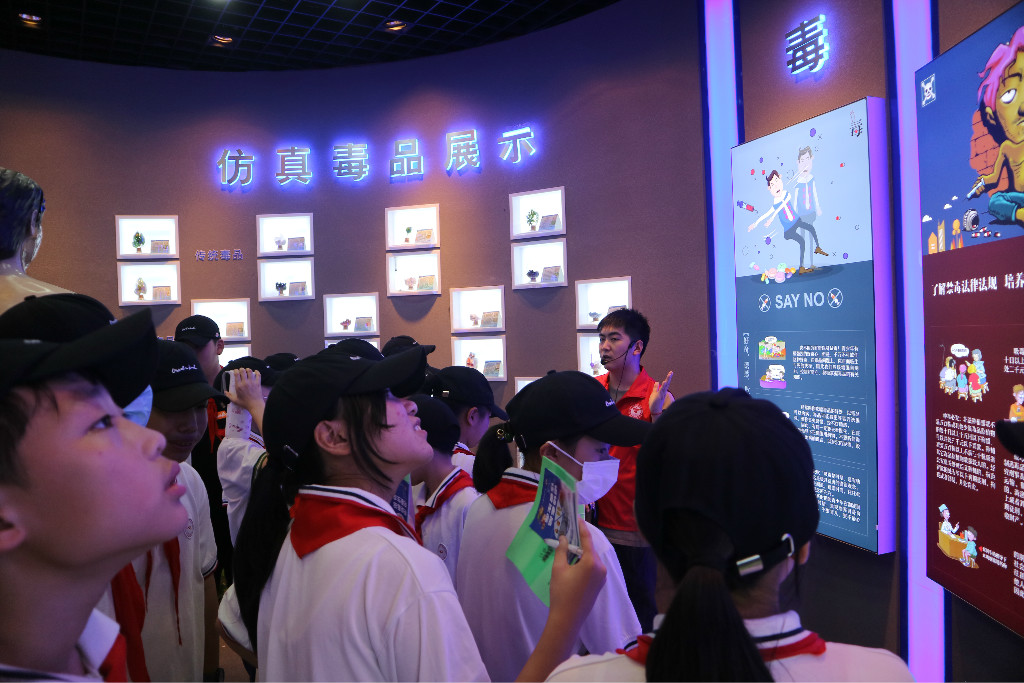 在禁毒教育基地,学生们在禁毒社工的指引和讲解下,有序地参观学习了林则徐虎门销烟的禁毒历史;毒品的认识;吸毒工具;毒品对个人、家庭和社会的危害以及禁毒相关法律法规。