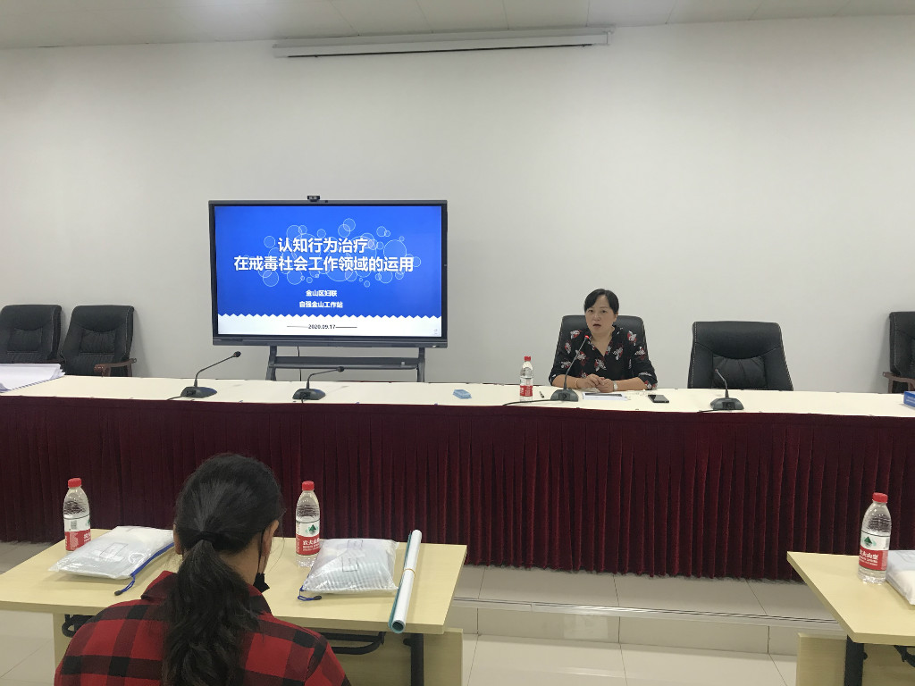 活动由曹英老师为核心志愿者们开展“认知行为治疗”在戒毒社会工作领域的运用为主题的培训,培训通过走进-认知行为疗法、学习-干预治疗方法、交流-防复吸技巧、探讨-应具备的能力四个方面展开。曹老师通过知识讲解,将认知行为治疗的知识进行全方位剖析;通过案例分析,让志愿者对于涉毒人员有更深的认识与了解;通过交流互动,加强志愿者的知识储备和帮教时的实际操作技巧。最后曹老师表示认知行为治疗是一个多元治疗方法,它主张采用认知、情绪、行为技术,它的实用价值在于它的短程有效、结构化、操作性强,志愿者在使用一切情绪处理技巧、信念的分析时,小心观察当事人的不同反应,并作出应对。