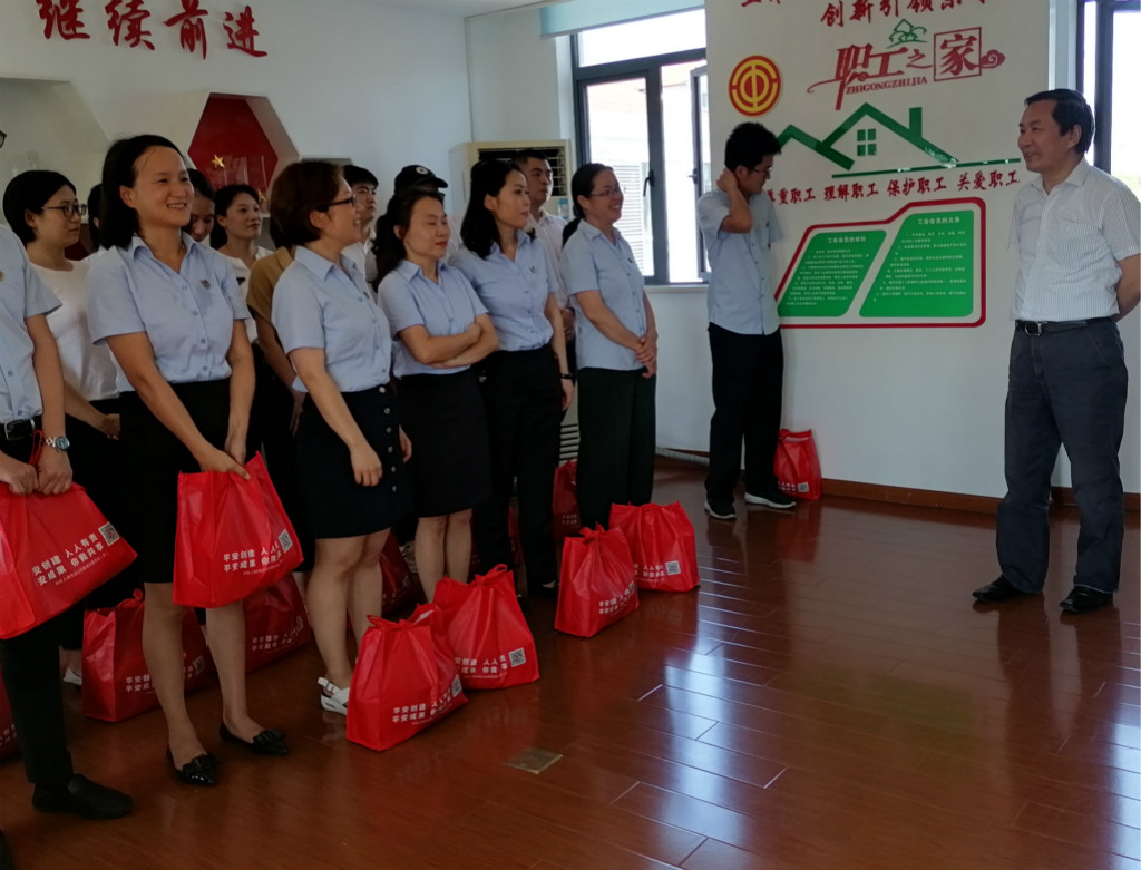 骄阳似火,热浪席卷着金山的热土,节节攀升的高温给大家的工作、生活带来极大的影响,但金山工作站的社工们不畏高温,一如既往地坚守在各自岗位上,维护着金山的社会稳定。8月12日下午,区委政法委副书记、区维稳办主任平安兴、区委政法委副书记叶耿耿深入一线,看望慰问冒着高温辛勤工作的一线社工,为他们送上清凉防暑用品。
