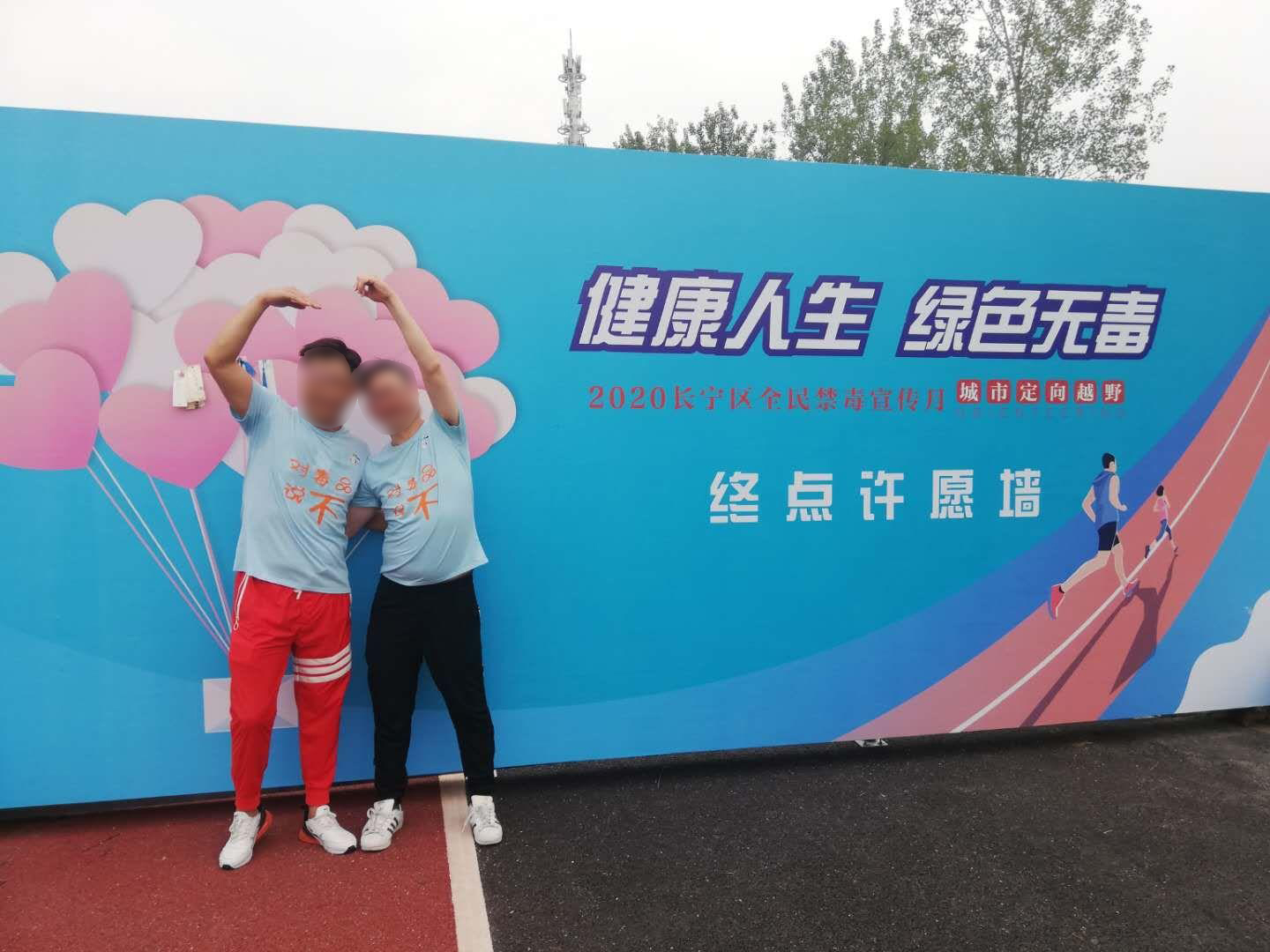 随着一声响亮的发令枪响,5位同伴身着“对毒品说不”的统一上装,精神抖擞地出发了。