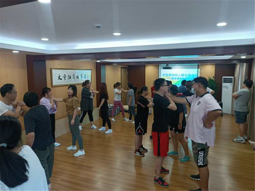 2020年7月30、31日下午,自强静安工作站和天目西路街道联合在大宁社区文化中心开展了2天的社工沙龙活动。沙龙活动中,区工作站根据男女的性别特点,组织20名男社工进行了体能及力量型的训练,学习了CPR急救项目以及防身术;20名女社工参与了基础的瑜伽课程。此次沙龙活动提升了参与社工的健康管理意识,为社工们提供了全面、健康、系统的体育运动。