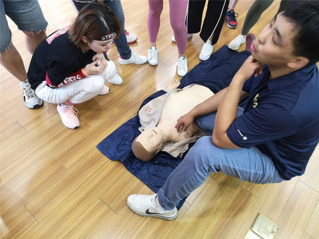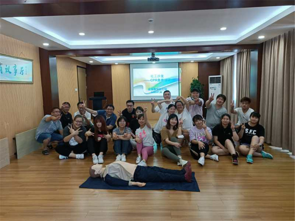 沙龙活动中,专业的健身教练教授了男社工较高强度的健身操运动动作,2节健身操后,男社工们都大汗淋漓。教练还讲解了遇到休克人员时可采取的急救步骤,现场演示了从询问、测试人体状况到心脏复苏的流程,社工们通过体验对假人进行模拟操作,确保掌握所学的急救知识。巴西柔术的教练教授了在各种突发事件的时,可以采取的紧急防身手段和遇到危险情况第一就是保证自己的生命安全的原则,尽一切努力逃离犯罪分子,慎用所学的防身术来对歹徒进行反击。