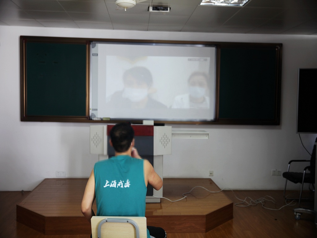 根据上一次活动最后和组员沟通家属线上面谈的需求,组员小乔特此提出申请,会后通过社工和戒毒所的协调促成此事,联系其母亲和阿姨当天来到现场进行视频通话。自从疫情爆发影响所内外的联系,正常的接见被取消,学员们都很久没见到自己的亲人了,只能通过书信一解相思之愁。