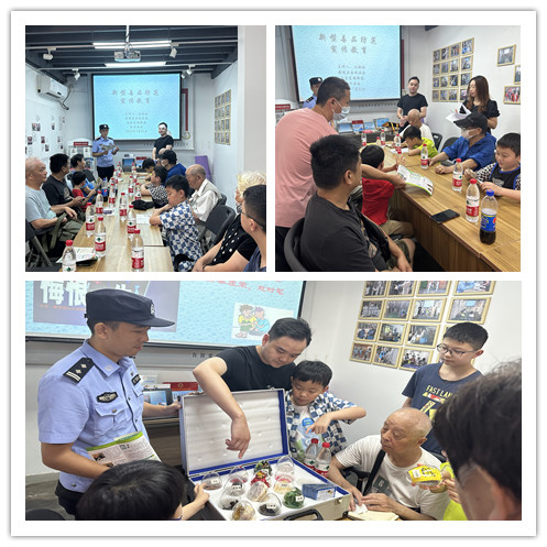 本次活动不仅邀请了社区中的退伍军人,还有许多青少年小朋友及家长参与其中。活动现场,社工播放相关的宣传PPT课件,通过图文展示和毒品仿真制品等多种方式介绍新型毒品的由来以及伪装形式等相关知识。此外,承兴居委社区民警还用通俗易懂的语言结合实际案例介绍了一些被伪装的新型毒品,提醒广大青少年朋友及家长提高防范意识,增加了大家对毒品发展趋势及禁毒法律法规的了解程度。