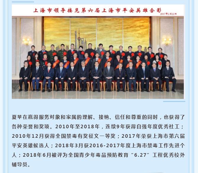 各种荣誉的背后是夏苹对禁毒社工这个职业的热忱付出,对专业帮教工作的不断探索,在未来的日子里,夏苹将一如既往地继续奋战在禁毒社工一线岗位上。