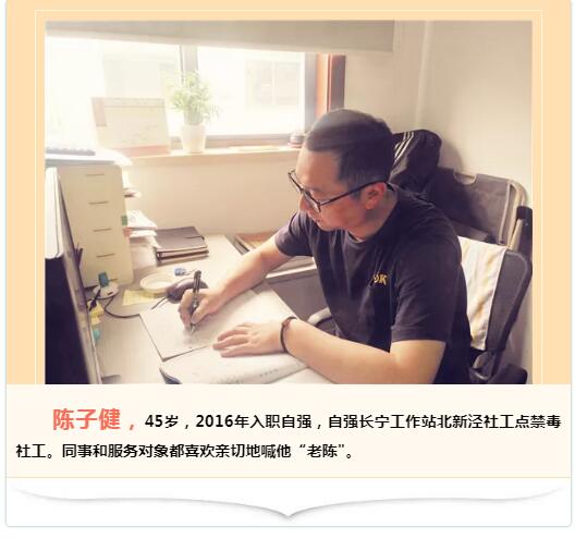 从事企业财会工作二十年,再投身到禁毒社工的队伍中,陈子健不折不扣的是个“大龄新人”了。全新的岗位,特殊的工作性质,陈子健深刻认识到在专业理论和帮教技巧运用方面,与资深同事相比存在很大差距,他一边虚心向同事请教,一边利用业余时间学习。2018年,陈子健成功通过了社会工作者(中级)考试,在拿到了社工师证书的同时,他对社会工作专业知识的理解也更深了。