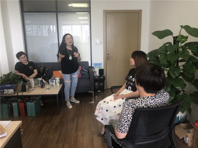 自强嘉定工作站中级社工薛冰莲、张君唯与胡海萍前往安亭社工点开展个案督导工作。本次督导采取了一个新颖的督导方式——情景模拟,初级社工通过演示一个案例的访谈过程,以更直观的视角,把日常的帮教过程真实地呈现在督导面前,便于中级督导社工进行督导和点评。