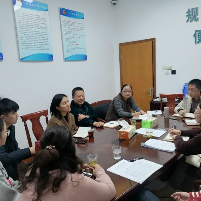 2020年12月24日上午,由市自强总社副总干事王雷、督导主任曹霞、人事干事陈志超以及兄弟区工作站示范岗社工组成的督查评估小组,来到杨浦工作站四平路社工点开展2020年度督查评估工作。