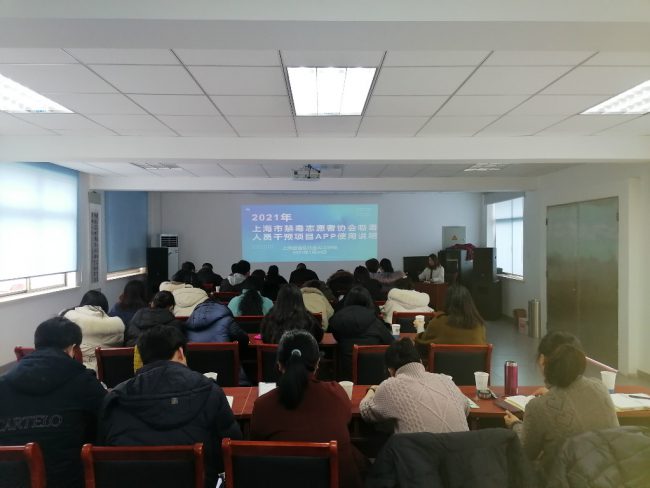 2021年1月20日下午,金山工作站在区人大工作研究会多功能厅开展上海市禁毒志愿者协会吸毒人员干预项目APP使用说明培训,工作站全体社工参加培训。