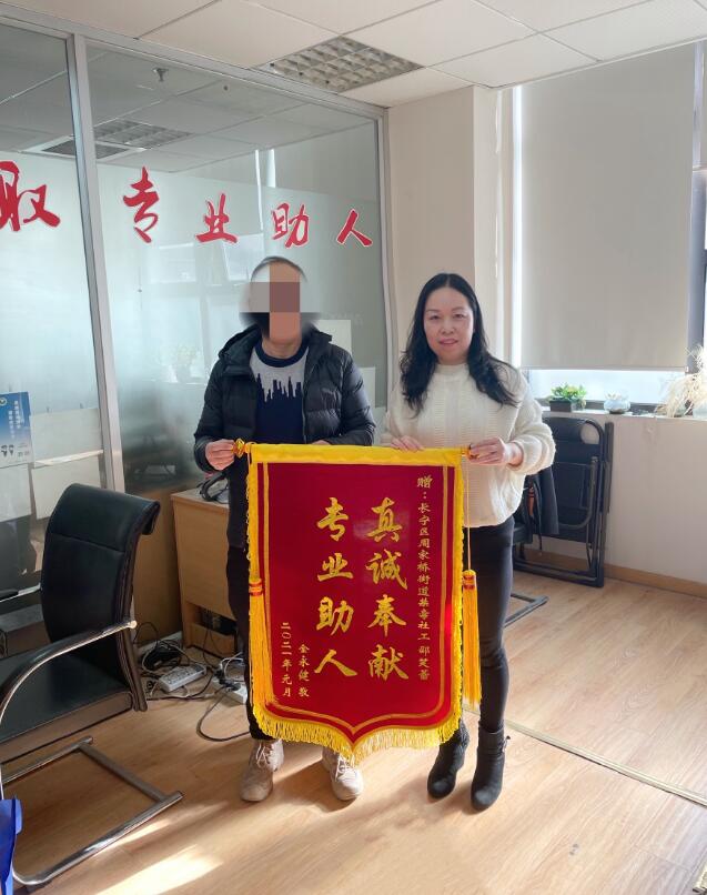 “谢谢三年来您对我不离不弃的帮助,在我最迷茫、最无助的时刻给我关爱、给我勇气、给我力量,让我一路前行,摆脱毒品。”2021年1月20日下午,长宁工作站周家桥街道禁毒社工点上演了温馨的一幕,服务对象阿J将书写着“真诚奉献 专业助人”的锦旗送到办公室,衷心感谢禁毒社工真情相助。