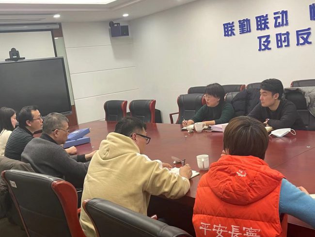 2021年1月18日下午,长宁区禁毒室主任周蔚、副主任吕成果一行莅临天山路街道指导社区禁毒工作,天山路街道平安办主任范卓毅、李世栋、禁毒联络员及禁毒社工陪同调研。