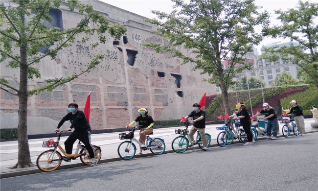 6月11日的上海,风和日丽,北站街道一年一度的绿色禁毒骑行宣传活动又开始了。本次活动的主题是“全民禁毒、健康生活”。骑行宣传队以静安区红色地标四行仓库旧址为起点,一路沿途打卡铁路博物馆、中共三大纪念馆、苏河湾、华侨城当代艺术中心馆等重要地标。