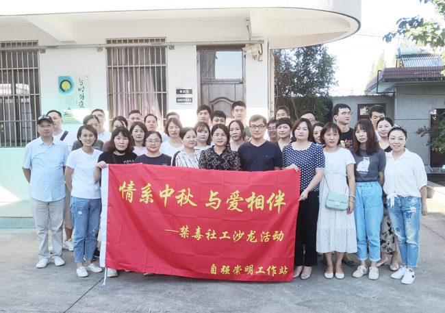 为进一步加强禁毒社工队伍建设,丰富社工的文化生活,激发队伍活力,提高凝聚力和向心力,9月17日,在中秋节来临之际,自强崇明工作站组织全体社工共43人,在港西镇成人学校开展“情系中秋 与爱相伴”社工沙龙活动。