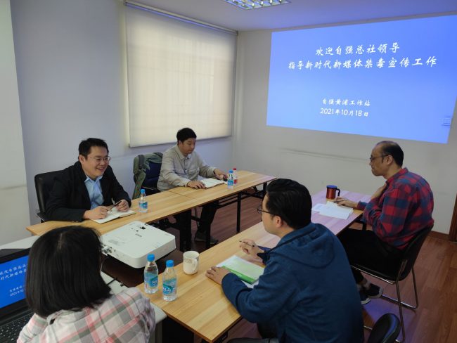 10月18日下午,自强总社副总干事王雷、宣传干事黄智明来到黄浦工作站,对如何在新形势下做好禁毒宣传、创新禁毒新媒体宣传模式、扩大禁毒宣传覆盖面和影响力的工作内容进行指导。工作站站长、副站长以及通讯员参加。