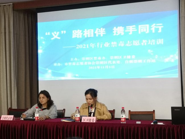 为不断强化医务行业禁毒志愿者的知识储备和志愿服务能力,更好的参与禁毒工作。2021年11月5日下午,自强崇明工作站在港西镇静南村委会会议室开展主题为“‘义’路相伴 携手同行”医务行业禁毒志愿者培训,参与本次培训的是各乡镇近50名医务禁毒志愿者和30余名禁毒社工。