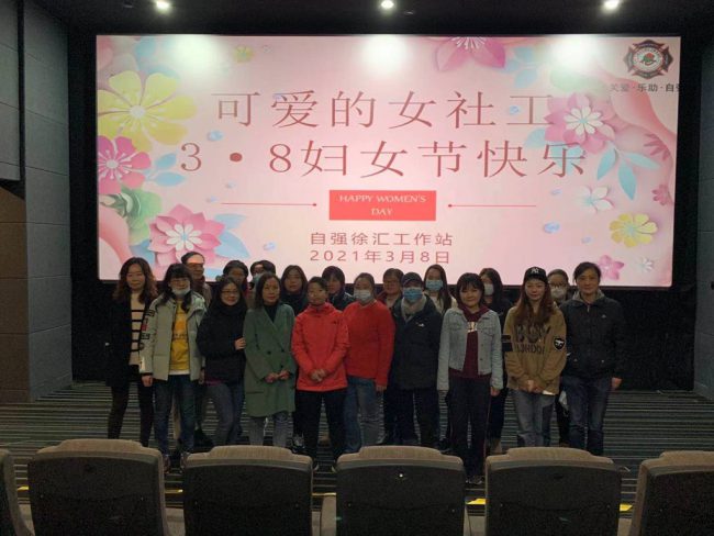 为庆祝第111个“三八”国际妇女节,为丰富女社工的业余文化生活,增强社工队伍的凝聚力,自强徐汇工作站组织全体女社工观看喜剧电影《人潮汹涌》,为全体可爱的女社工献上节日的祝福!