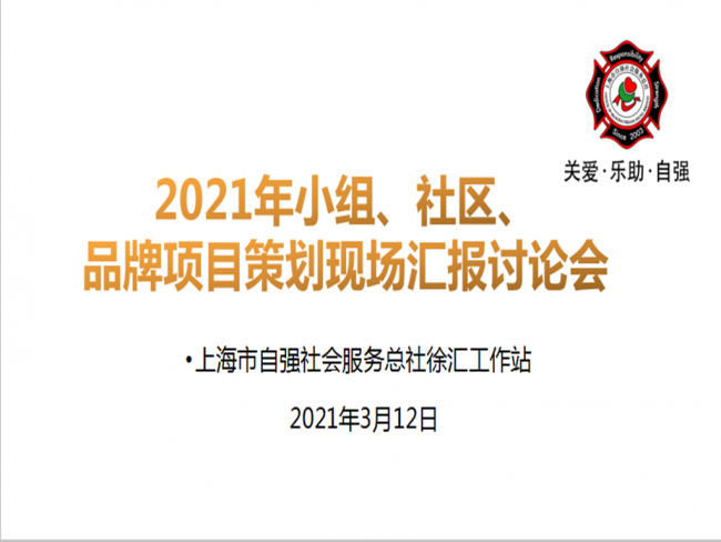 2021年3月12日下午,自强徐汇工作站在徐汇区政府3号楼三楼第四会议室召开2021年小组、社区、品牌项目策划现场汇报讨论会。