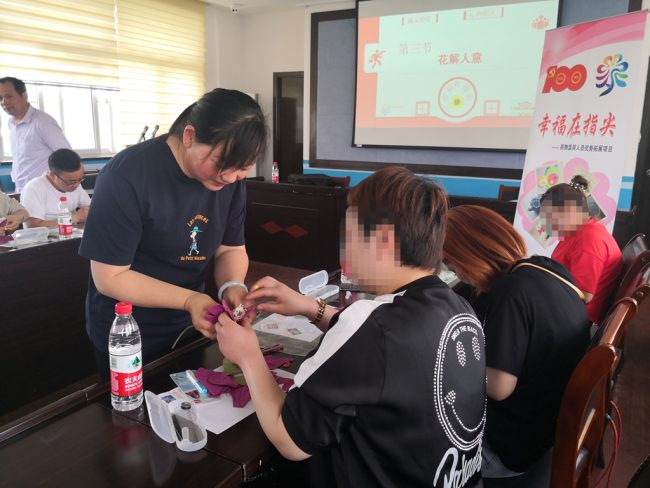 为了在女性药物滥用人员之间形成自助、互助的支持网络,幸福在指尖项目组在前期向社会面上的女性药物滥用人员招募后,确定了20名组员参与今年的项目,借助崇明花博会的契机,从5月中旬到6月底在崇明社区帮教服务中心开展了六节以花为主题的小组活动。